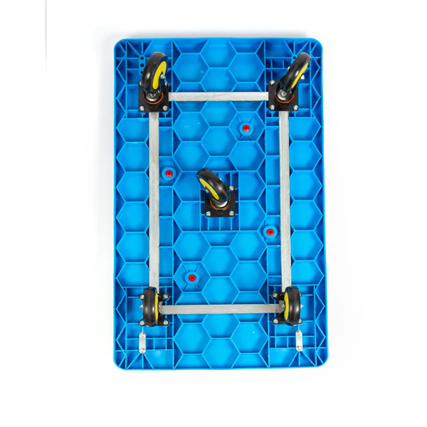 Платформенная тележка оснащена пятью колесами. Благодаря четырем ребрам жесткости и усиленной конструкции, она готова справиться с любыми нагрузками. Жизнь становится проще и приятнее с маленьким, но мощным помощником для транспортировки товаров и оборудования. Тележка для перевозки грузов на колесиках – ваша новая надежная подкатная «машинка» для быстрой и удобной перевозки даже самых тяжелых грузов.